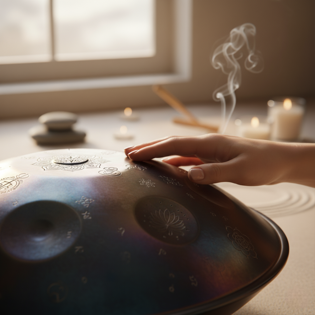Nos handpans sont forgés et accordés à la main par des artisans passionnés. Chaque instrument est testé individuellement pour garantir une sonorité pure, harmonieuse et méditative.
